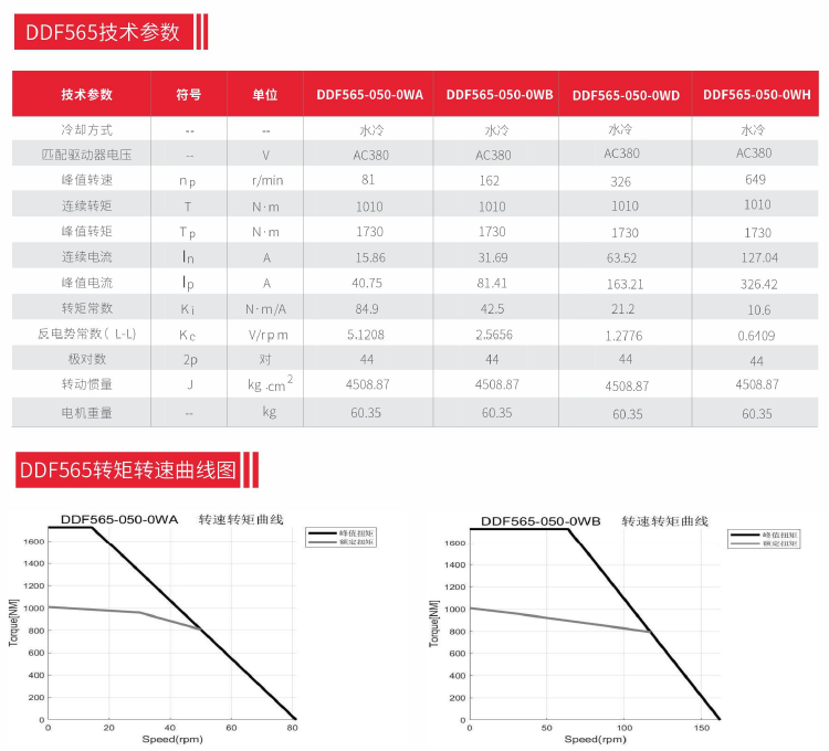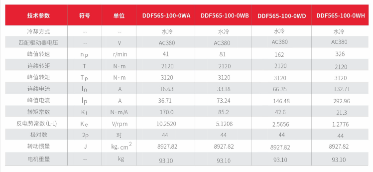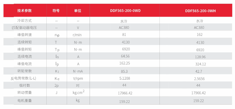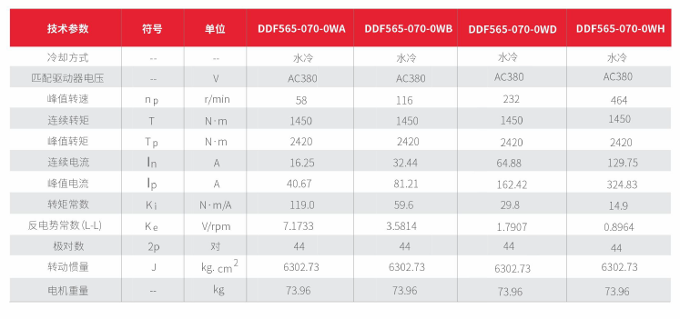 水冷無(wú)框電機DDF565技術(shù)參數