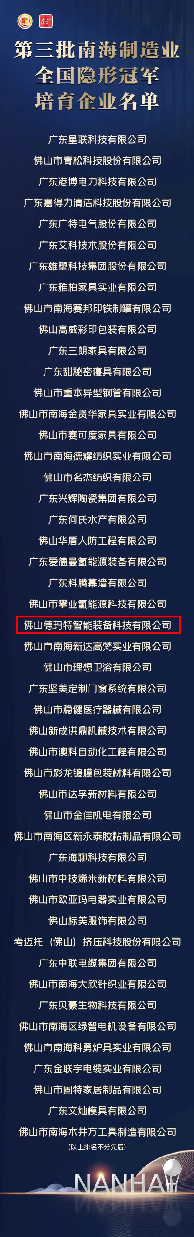 在南海發(fā)起第三批南海制造業(yè)全國隱形冠軍尋訪(fǎng)活動(dòng)中,德瑪特智能憑借在直驅電機領(lǐng)域的強勢競爭力,入選“南海制造業(yè)全國隱形冠軍培育企業(yè)”。